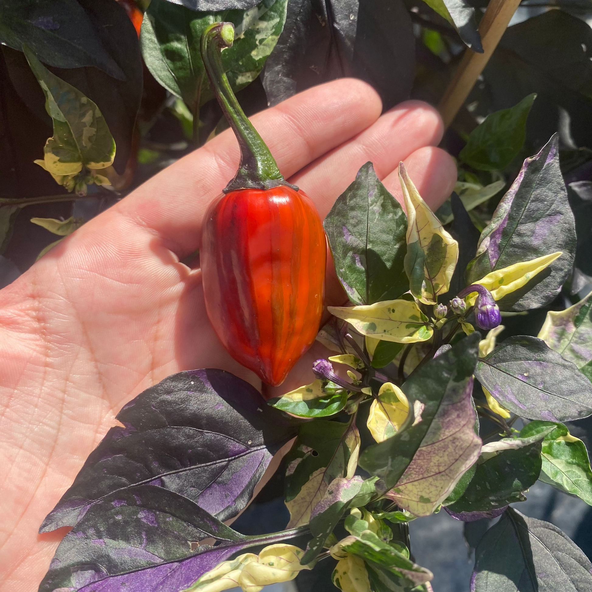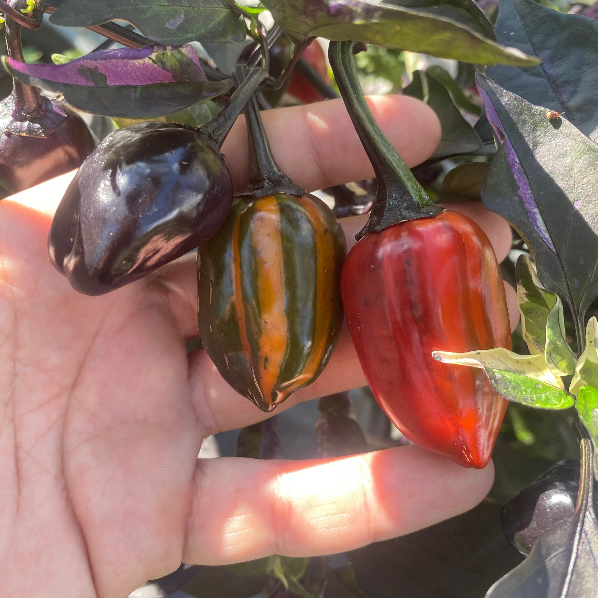Il Bryan's Emperor Blood è una varietà straordinaria di Capsicum annuum sviluppata da Eric Knight negli Stati Uniti, nata dall’incrocio tra Scarlett’s Chili e Poblano. È una linea dedicata a Rich Blood e Bryan Townshend (T-E), che unisce estetica e gusto in un equilibrio raro tra ornamentale e produttivo.