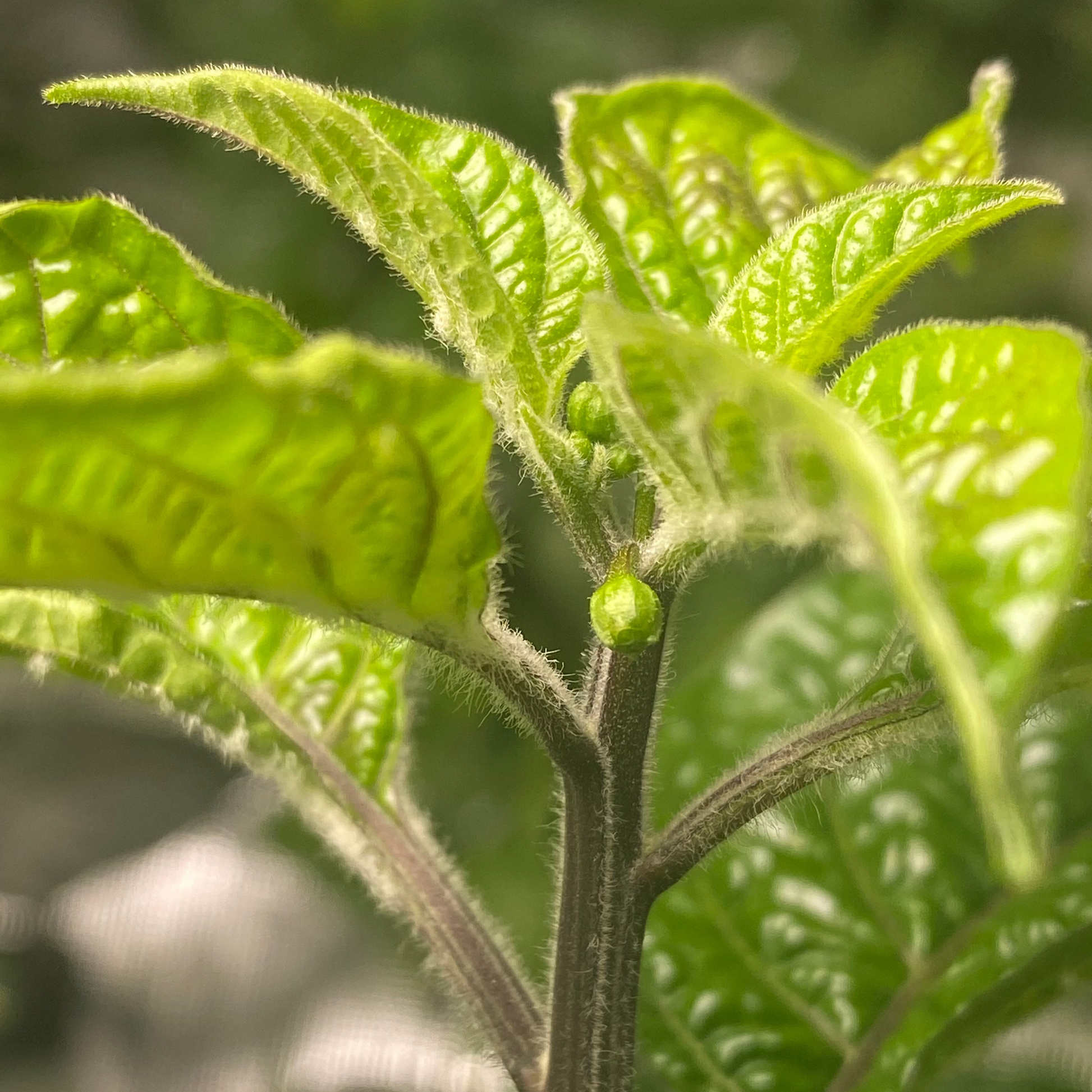 - Fiori bianchi tipici della specie Capsicum chinense.